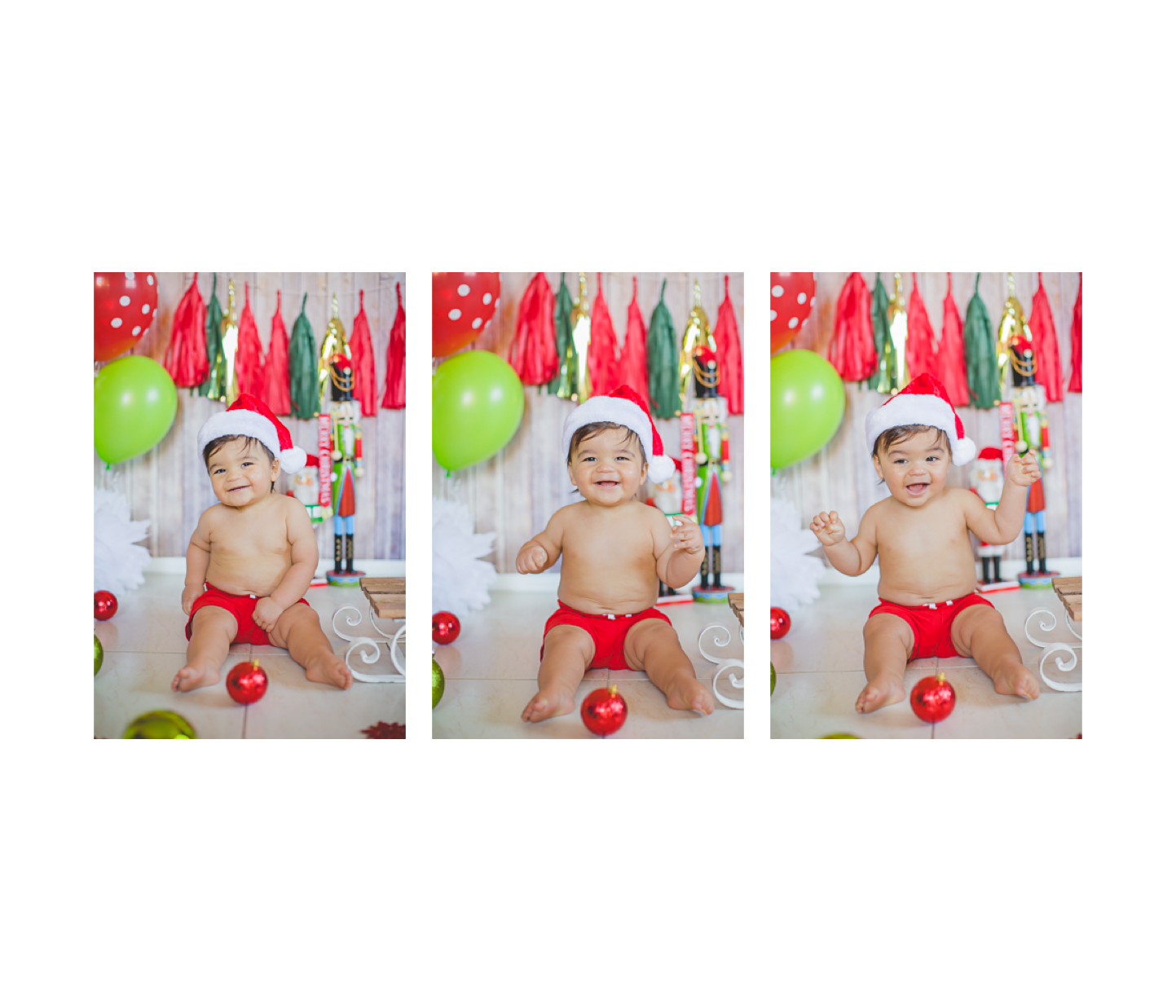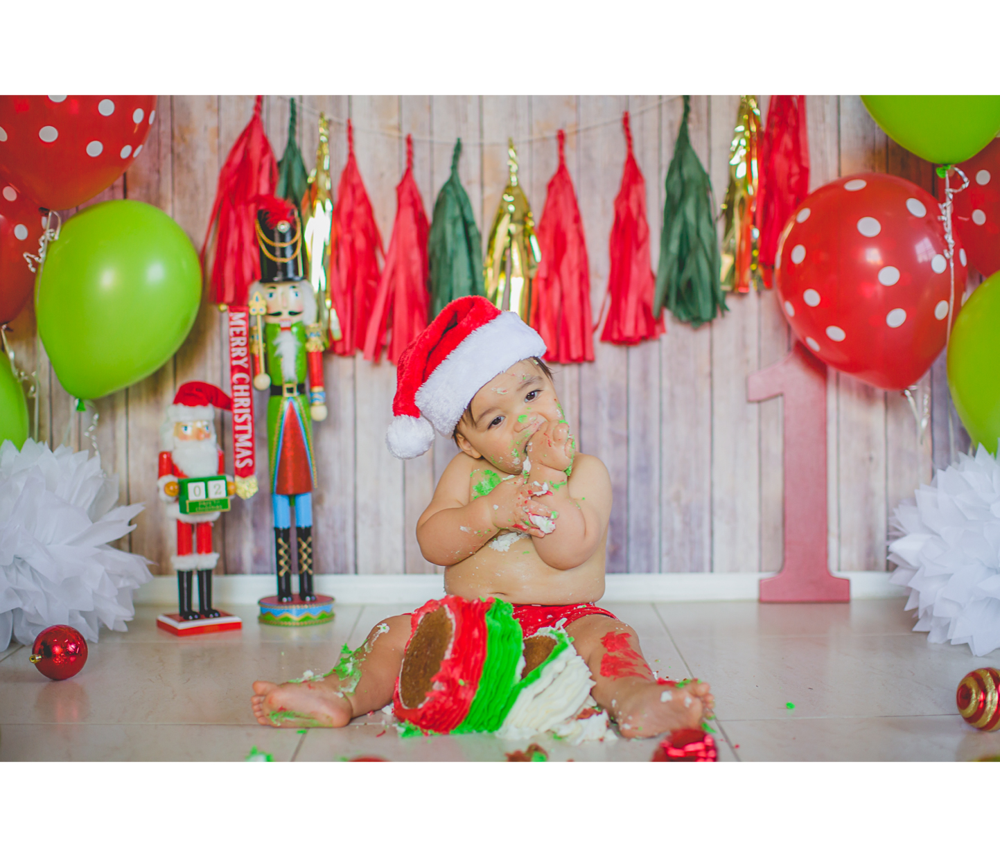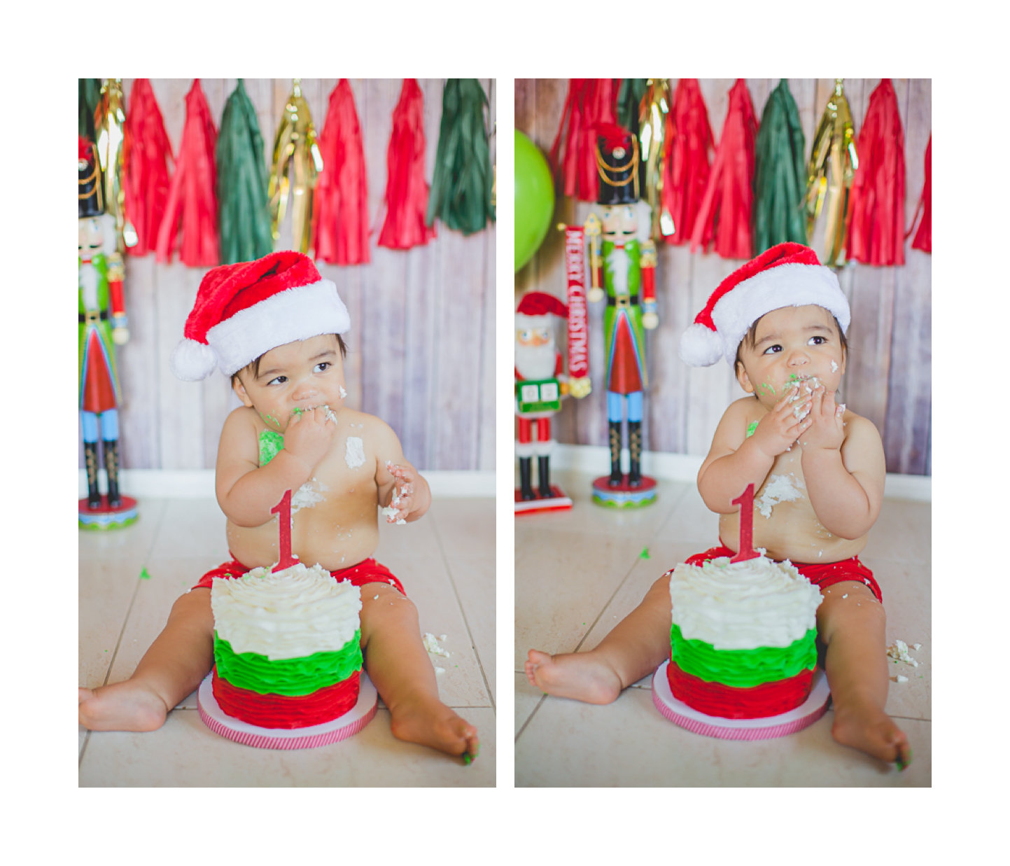 Nació hace poco más de un año, en navidad, así que su mami quiso que el tema de su Smash the cake, fuera navideño. Súper original y colorido, además Matthew no se movió de su lugar y nos regaló muchas sonrisas lindas… es muy fácil este trabajo con bebés así