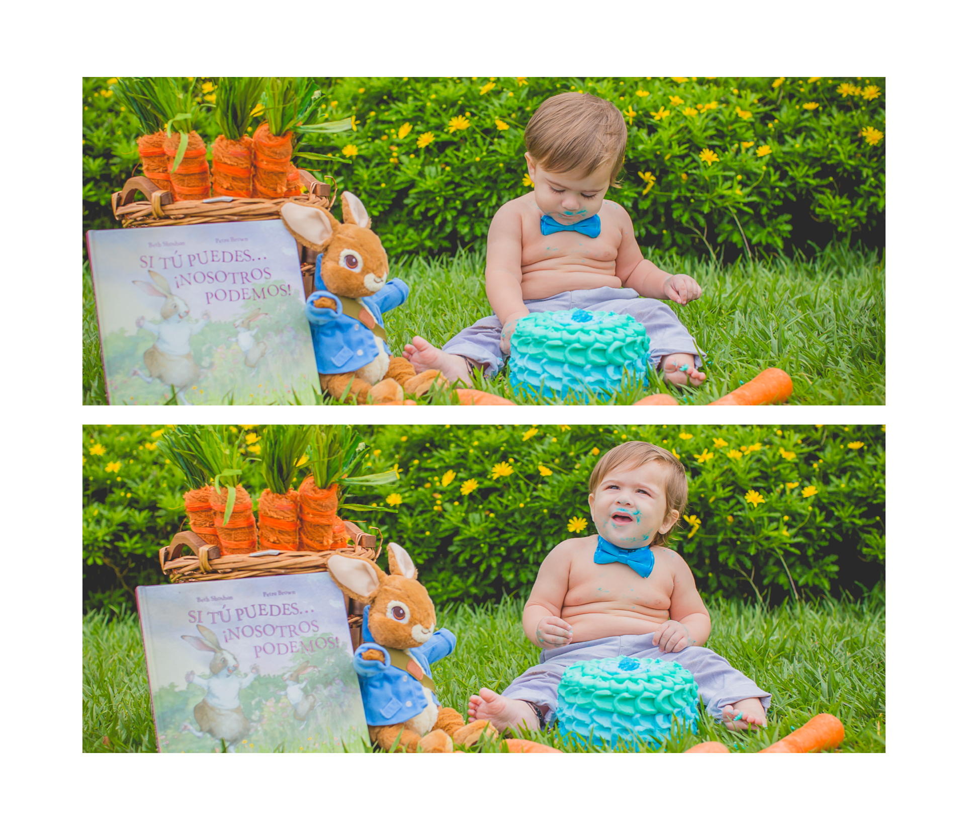 Ya es la segunda vez que trabajamos con esta “bolita de amor” y la verdad pudiéramos hacerlo cientos de veces más. El único detalle es que la próxima vez esperamos verlo sin torta, porque a pesar de que las fotos quedaron bellas y pudimos captar algunas sonrisas, a Joaquín no le gustó NADITA la torta, y mucho menos ensuciarse. Como pueden ver, tuvimos que cambiar de locación a mitad de la sesión, porque el bebé huía de la torta -literal-. !Poechito! Igualmente, Joaquín es de comérselo, así que aquí les dejo el resultado para que se deleiten